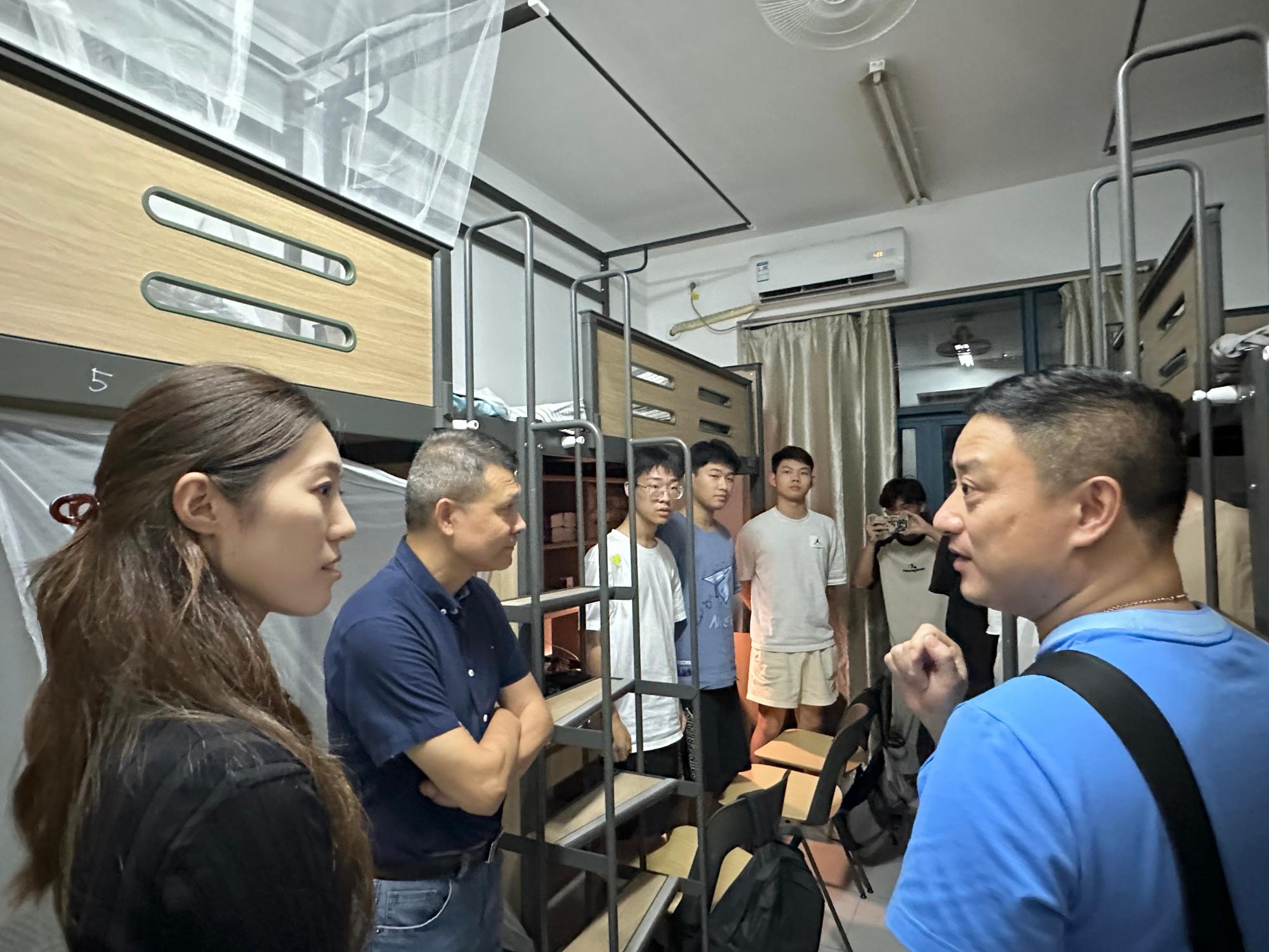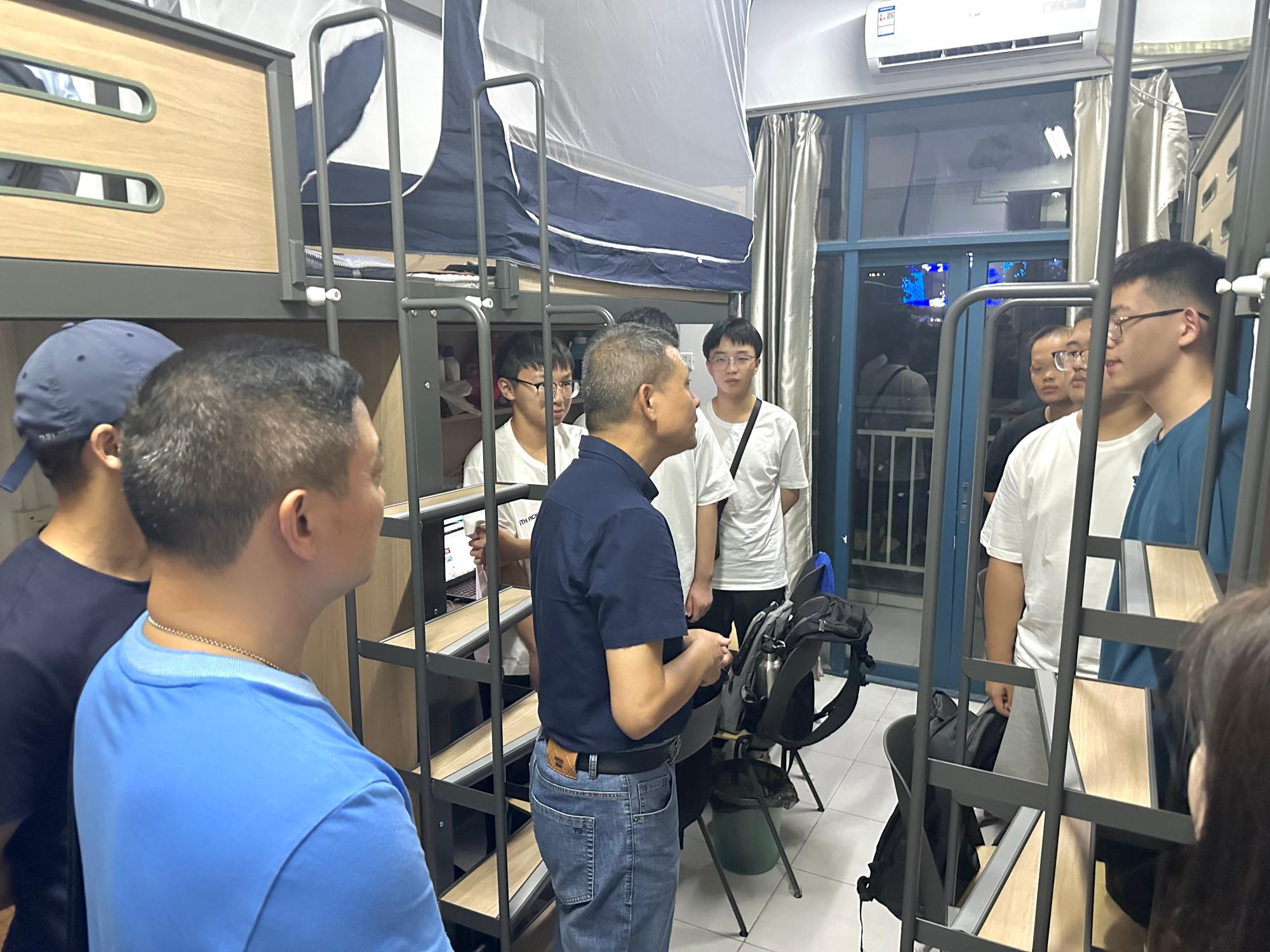 报到当晚,91在线 院长张文宇,副院长孔繁岗,三位新生班主任,辅导员以及行政老师走访了每一位新生的寝室并进行了亲切交流。