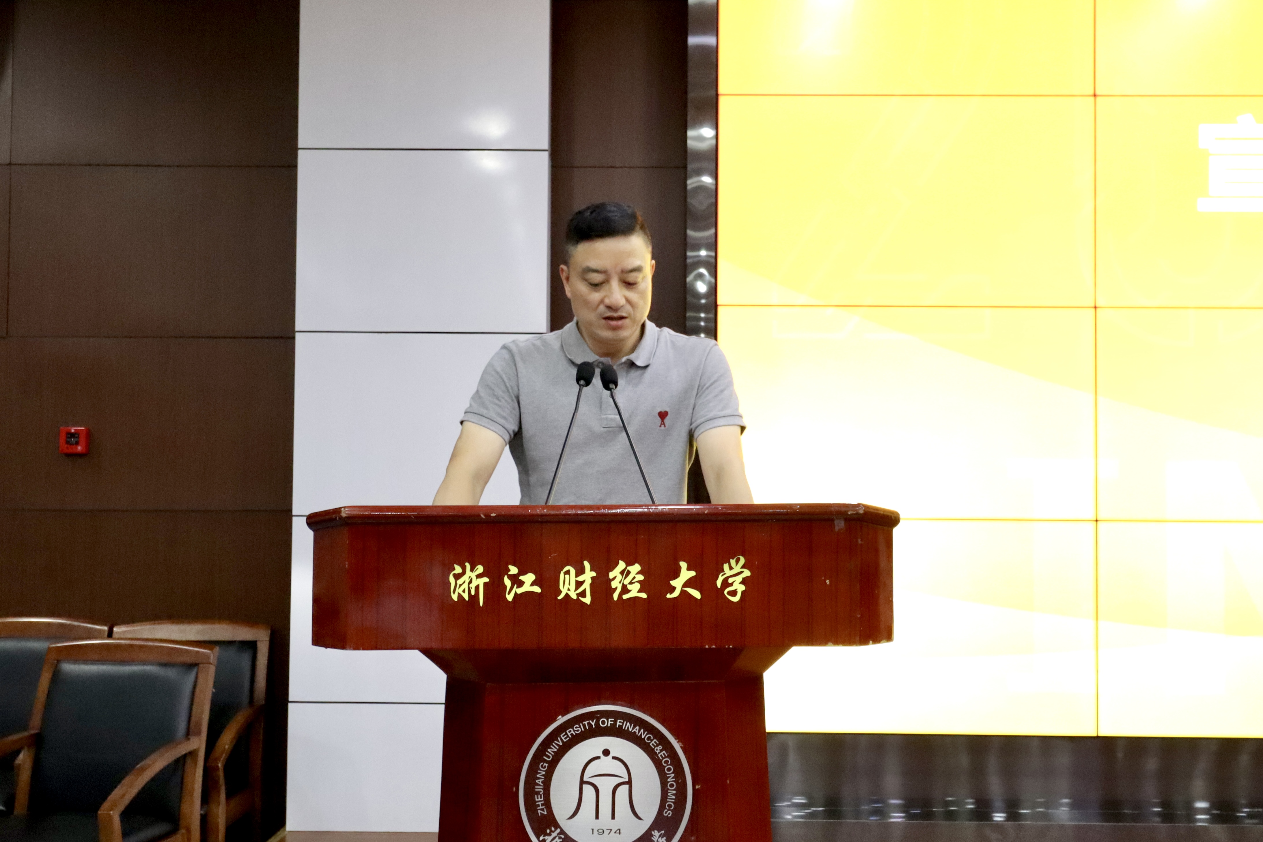 黄文礼书记讲述了自己大学时期的经历,强调了专业积累的重要性。随后为新生提出了三点寄语:一是做到志存高远,专业立身、不负韶华;二是意识到国际化视野的重要性,面对百年未有之大变局,以全球化格局去看待金融科技行业;三是要与人为善,若在生活学习上遇到挫折,也要学会向前看。他祝愿同学们顺利开启一个全新的旅途,培养积极向上的心态,勇敢追求自己的梦想!