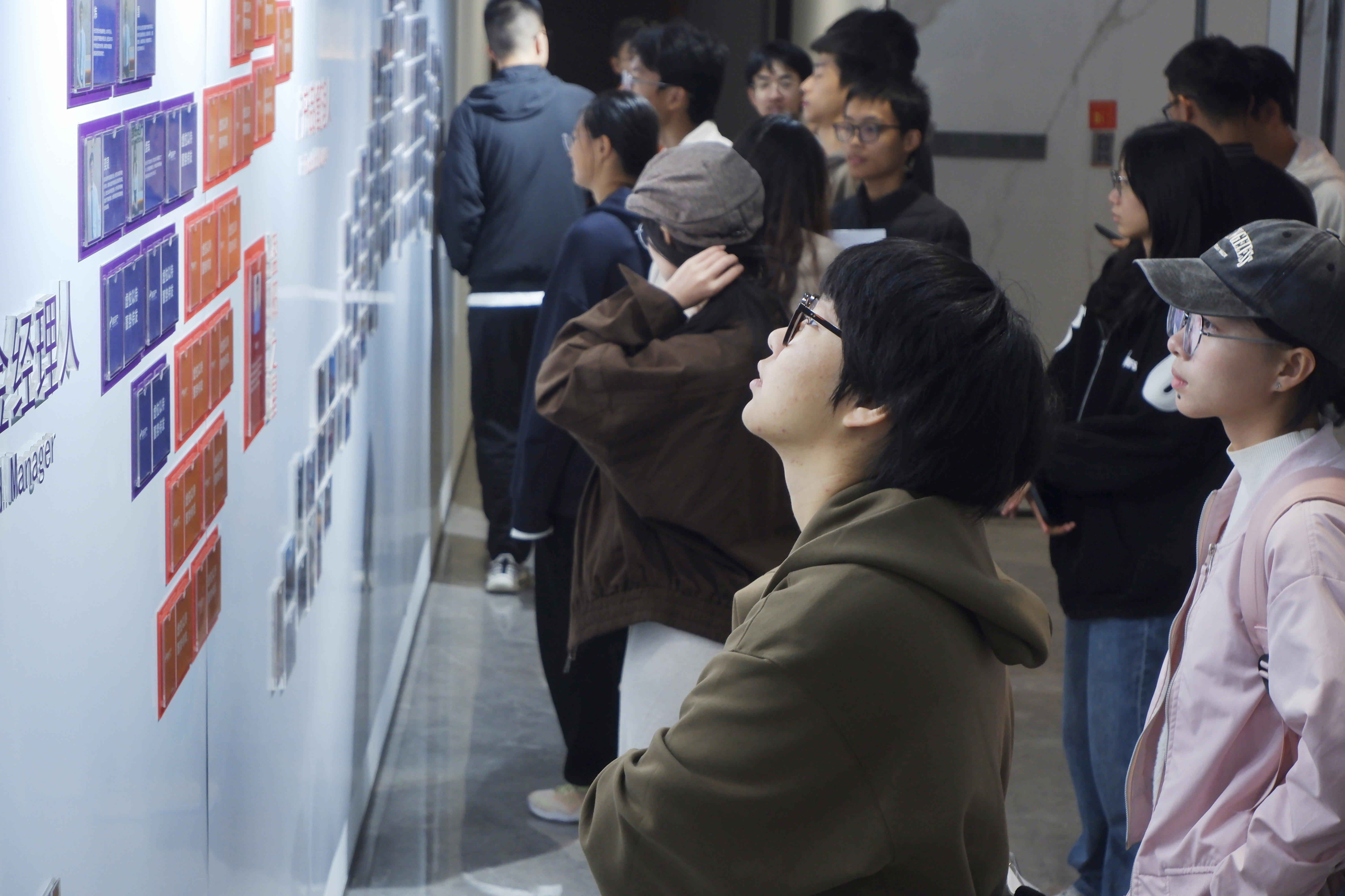 公司员工代表全程陪同讲解,带领同学们先后参观了公司办公大楼、量化交易室及员工办公区。大家不仅近距离观察金融从业者的工作日常,沉浸式感受公司专业高效的工作氛围;还在历程墙与荣誉墙前,直观了解盈阳资产的发展轨迹与行业成就;在照片墙前,真切体会企业积极向上的文化底蕴;更在羽毛球场、篮球场上,感受到公司开放活力的办公环境。