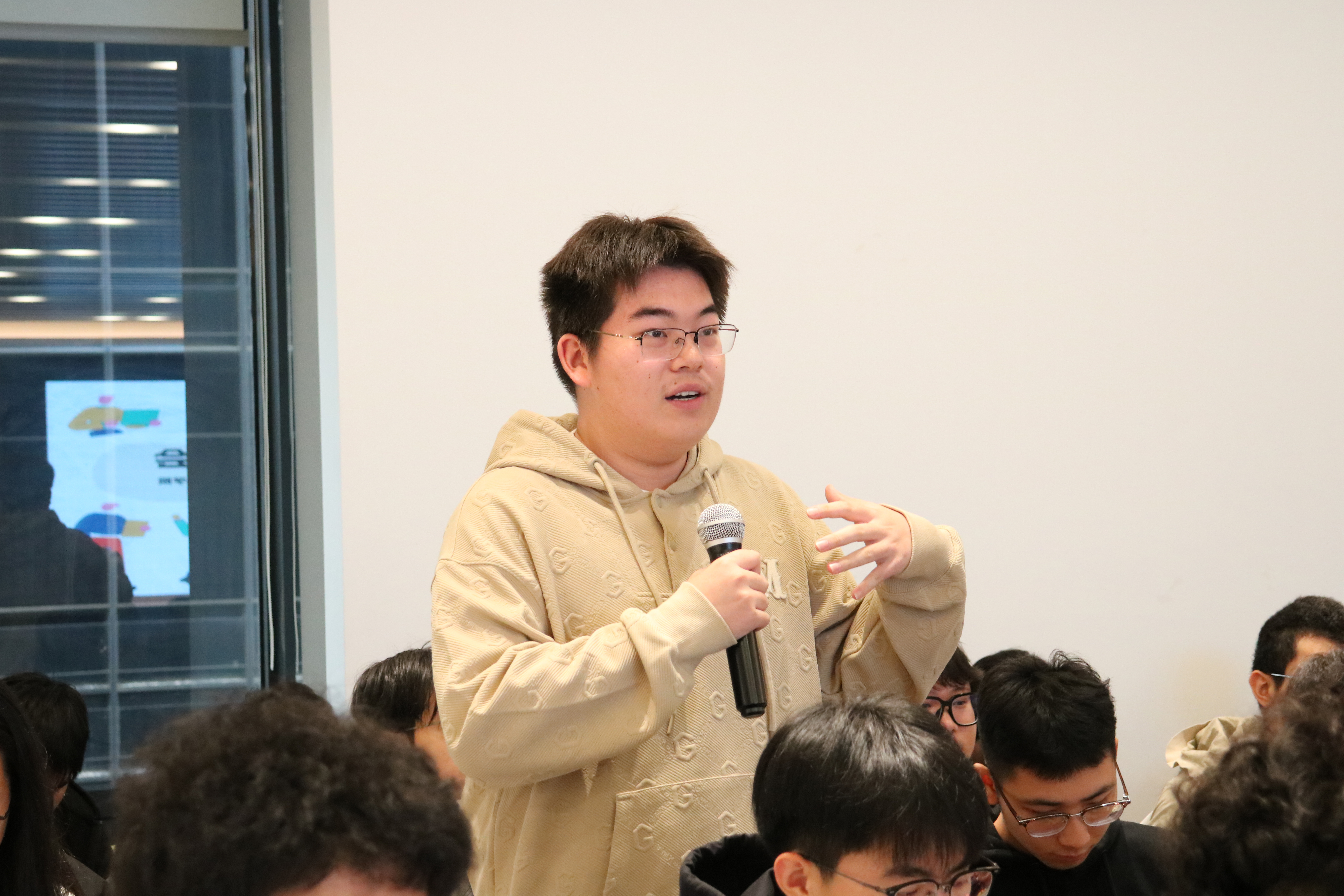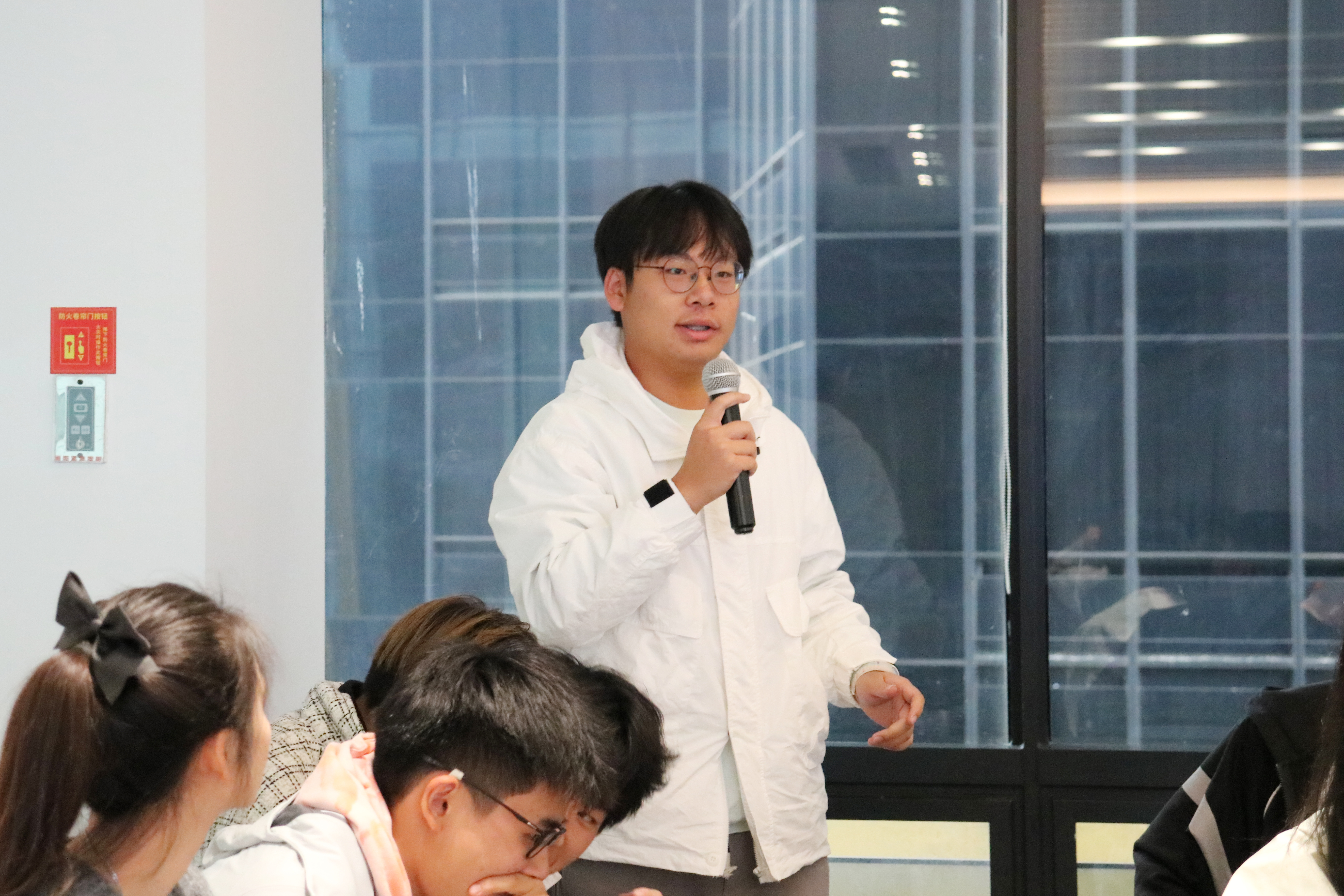 座谈会中,盈阳资产基金经理人陈浙平学长(2016届校友)从公司发展概况、核心业务板块、所获行业荣誉、实习生培养项目及91在线等方面,为同学们作了全面细致的介绍,特别强调了公司在量化投资领域的持续深耕与创新突破,为同学们搭建起行业认知的基础框架。