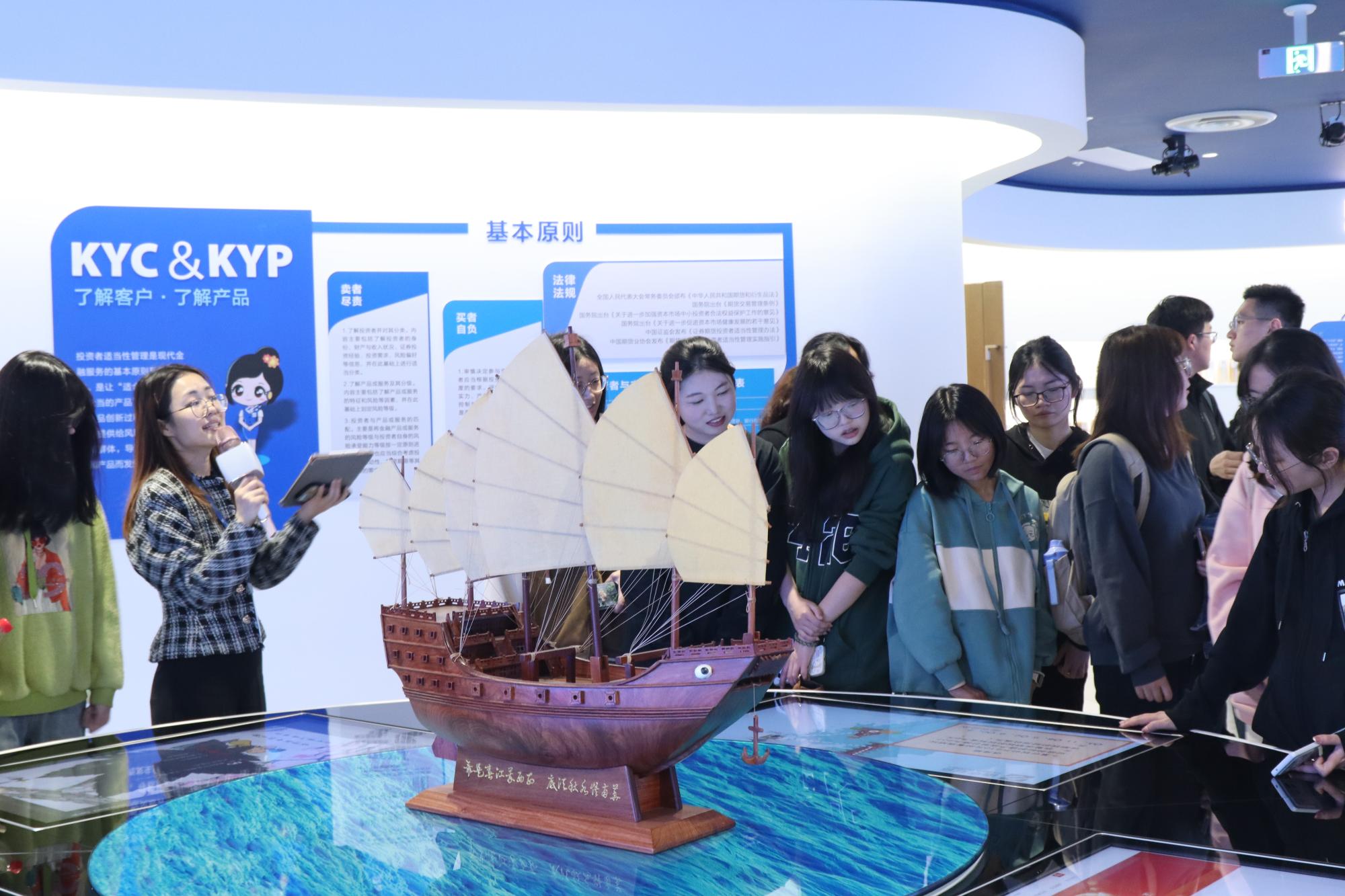 南华期货讲解员带领同学们参观了南华期货投资者教育基地,了解南华期货的91在线与其紧跟中国期货行业的发展历程,在多元化的互动交流中对期货交易产生初步印象。